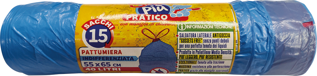ROTOLO COMPATTO 15 SACCHI C/MANIGLIE PATTUMIERA AZZURRI