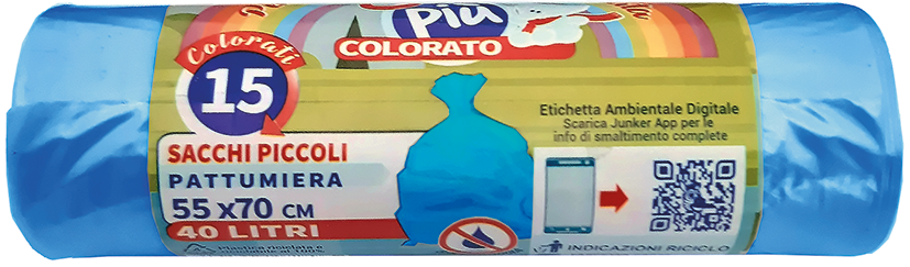 ROTOLO COMPATTO 15 SACCHI C/MANIGLIE PATTUMIERA AZZURRI