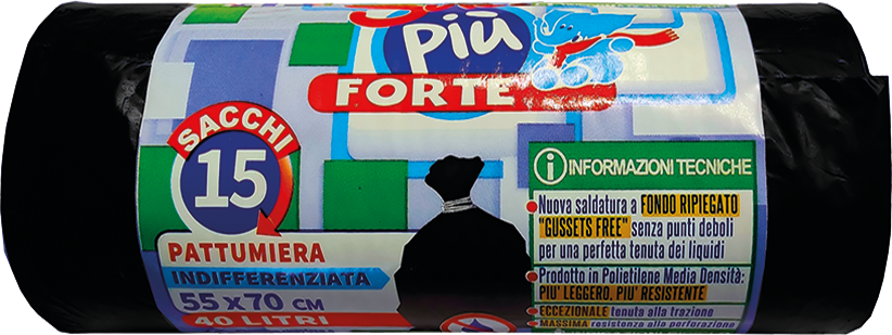• ROTOLO COMPATTO 15 SACCHI PATTUMIERA NERI