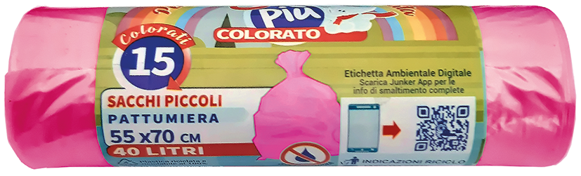 • ROTOLO COMPATTO 15 SACCHI PATTUMIERA ROSA TRASP.