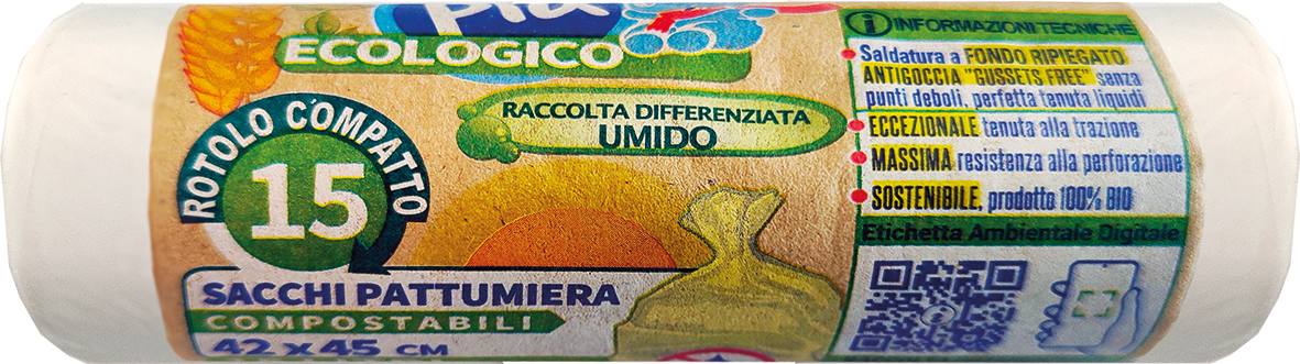 ROTOLO COMPATTO 15 SACCHI SOTTOLAVELLO COMPOSTABILI