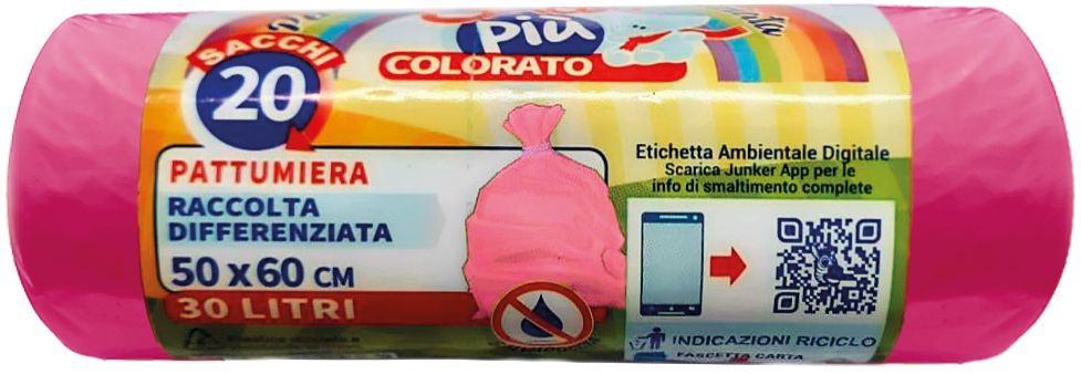 • ROTOLO COMPATTO 20 SACCHI PATTUMIERA ROSA TRASP.